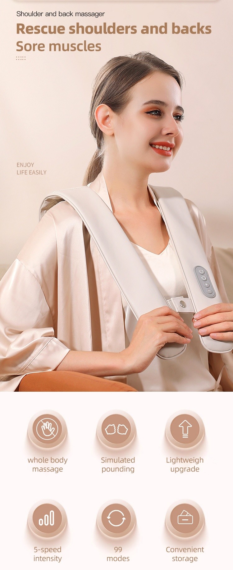 Das Nacken- und Schultermassage-Schal-Produkt soll Muskelspannungen und Schmerzen im Nacken und in den Schultern lindern.Das Produkt verwendet mehrere Massageknoten und Wärmetherapie, um die betroffenen Bereiche zu entspannen und zu beruhigen.