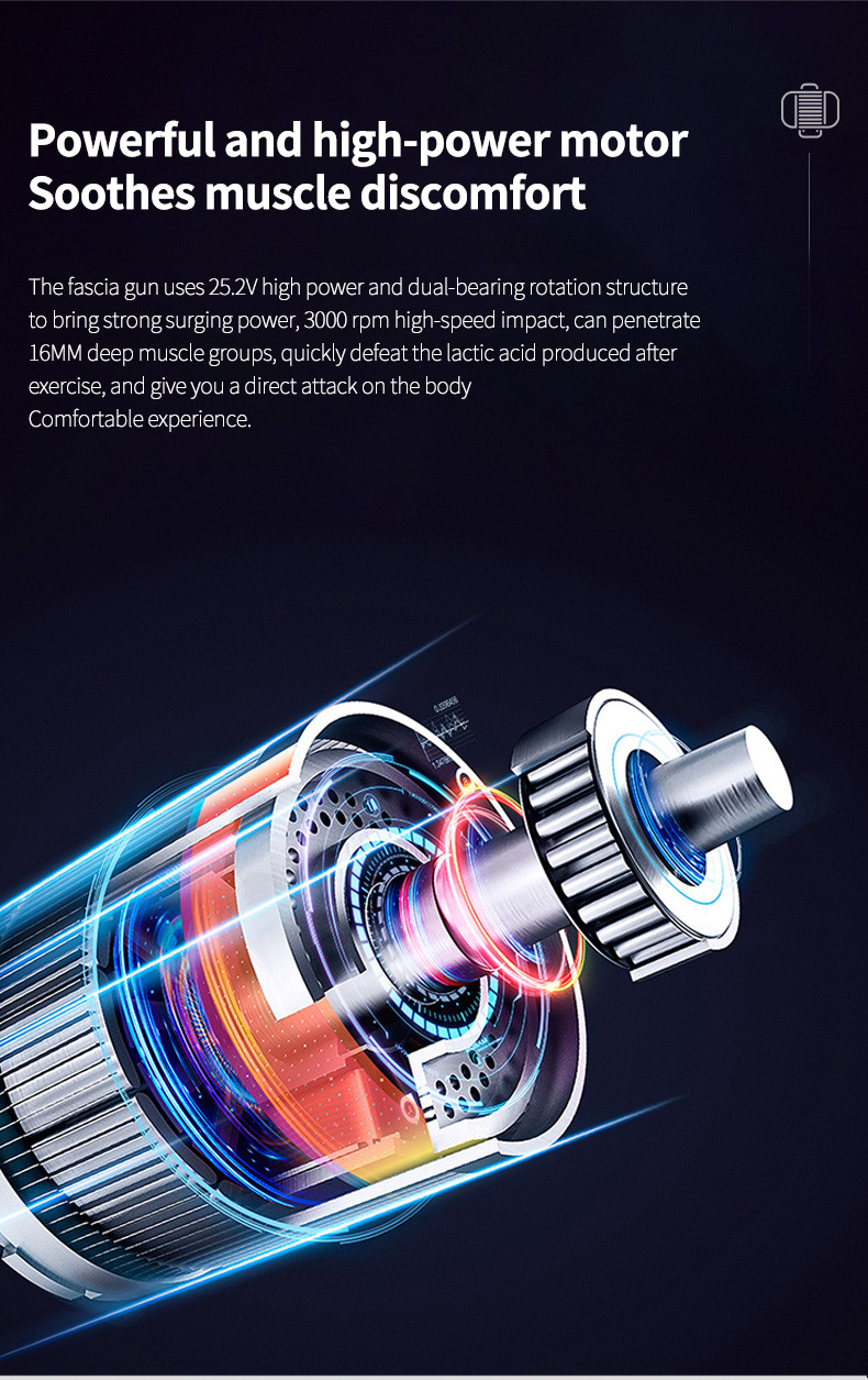 Die Massegeräte aus Kohlenstofffaser sind leicht und einfach zu bedienen, ergonomisch gestaltet und bequem zu halten und zu bedienen.Und der leise Motor sorgt dafür, dass Sie ihn benutzen können, ohne andere zu stören.Mit einem Geräuschpegel von weniger als 60 dB ist diese Massagepistole perfekt für den Einsatz zu Hause, im Büro oder im Fitnessstudio.